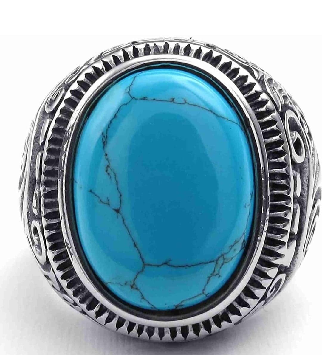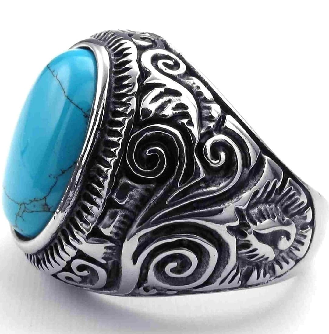 Bague Biker Acier Inoxydable Rétro Bleu Argent Classique Anneau Bague Homme