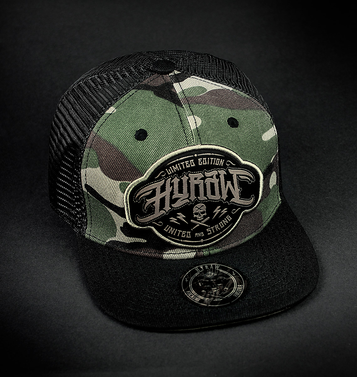 Casquette style snapback - Filet à l'arriere - Broderie 2 couleurs sur le front - Impression 2 couleurs sous la visiere - Croix brodée à l'arriere - Bande de propreté personnalisée - 100 % coton
