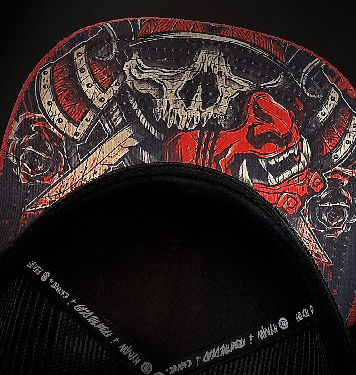 Broderie «HW» en relief 2 couleurs sur le front, impression en couleur du visuel «Samourai» sous la visière.