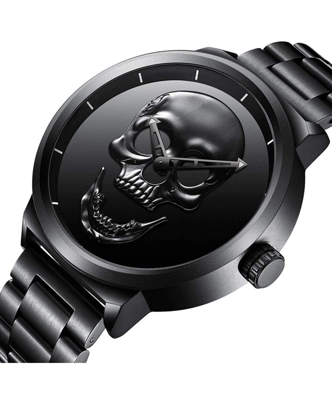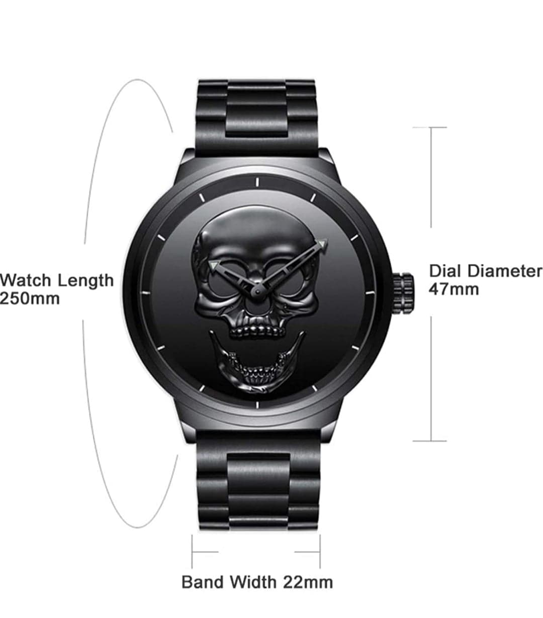 Homme Analogique Quartz Montre Tête de Mort Avec Acier Inoxydable Grand Cadran (Noir)