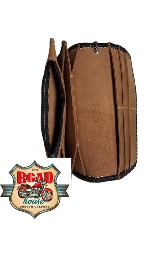 - Portefeuille en croute de cuir avec chaînette attache ceinture.