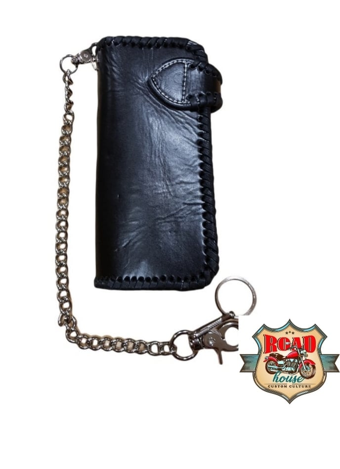 - Portefeuille en croute de cuir avec chaînette attache ceinture.