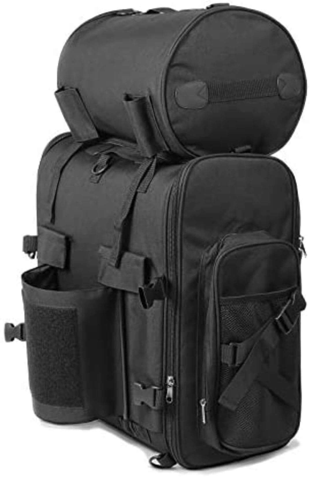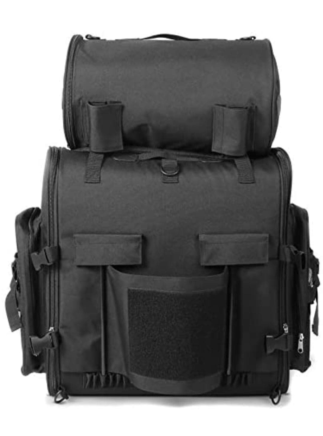 Sacoche sissybar, rouleau de bagages, sangles de fixation, sangles d'épaules, housse de pluie. Sacoche arrière avec rouleau à bagages pour fixation aux dossiers sissybar. Rouleau peut également être utilisé séparément