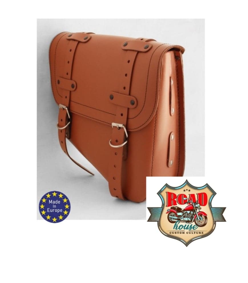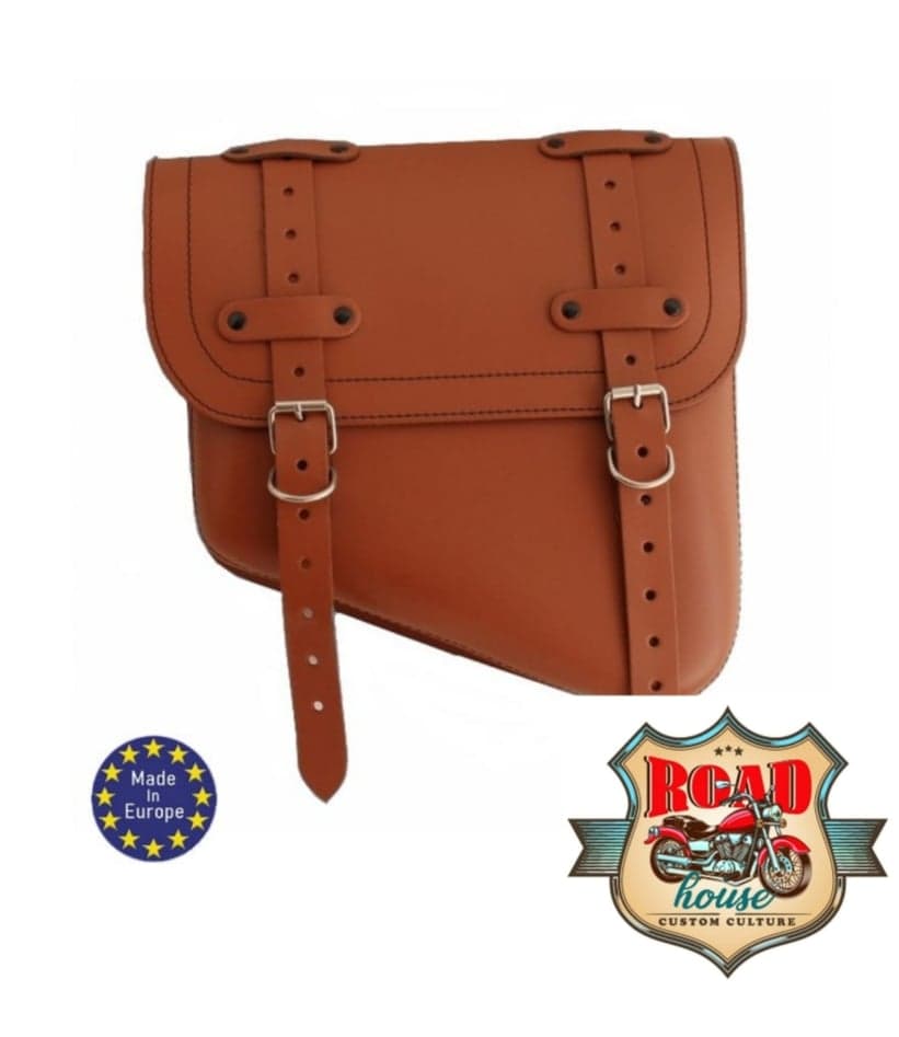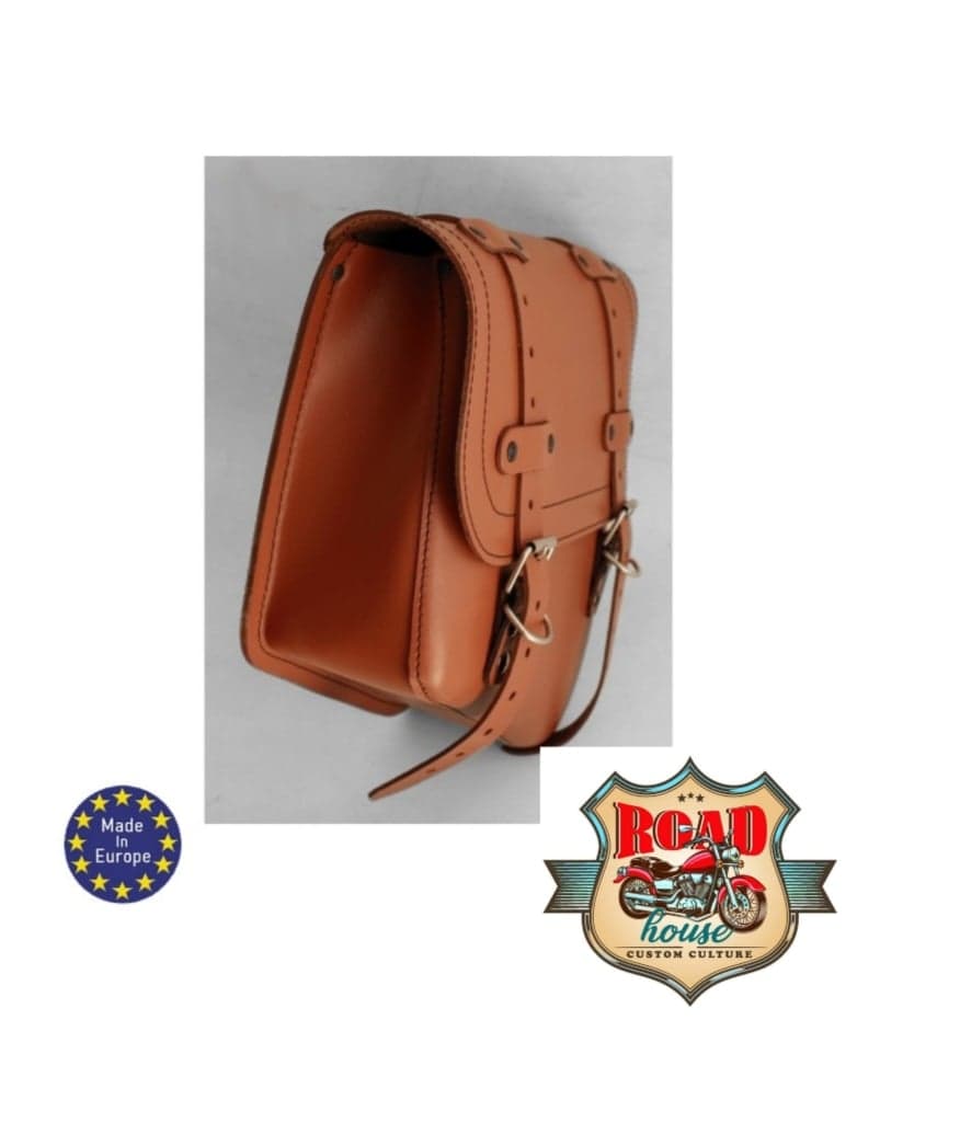 - Sacoche universelle Latérale droite ou gauche en cuir brun clair.