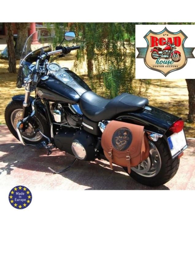 - Fixation arrière par sangles cuir ajustables pouvant se fixer directement sur les sabres de la moto.
